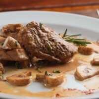 LOMO CON SALSA DE CHAMPIÑONES AL VINO TINTO4,5
